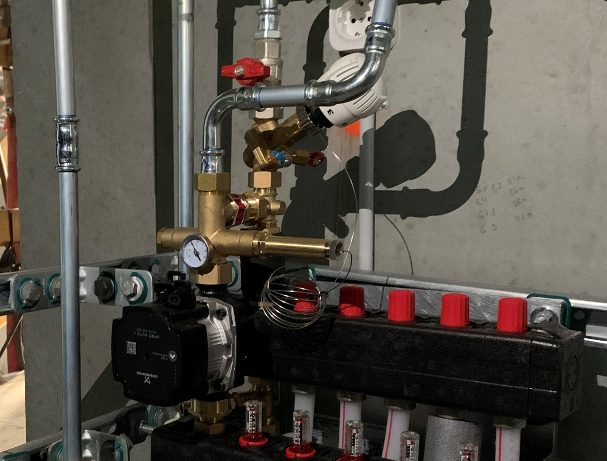 Det erfarne VVS-firma John Jensen VVS A/S har varetaget installationen af gulvvarmeshuntene i de to ejendommes installationsskakte.